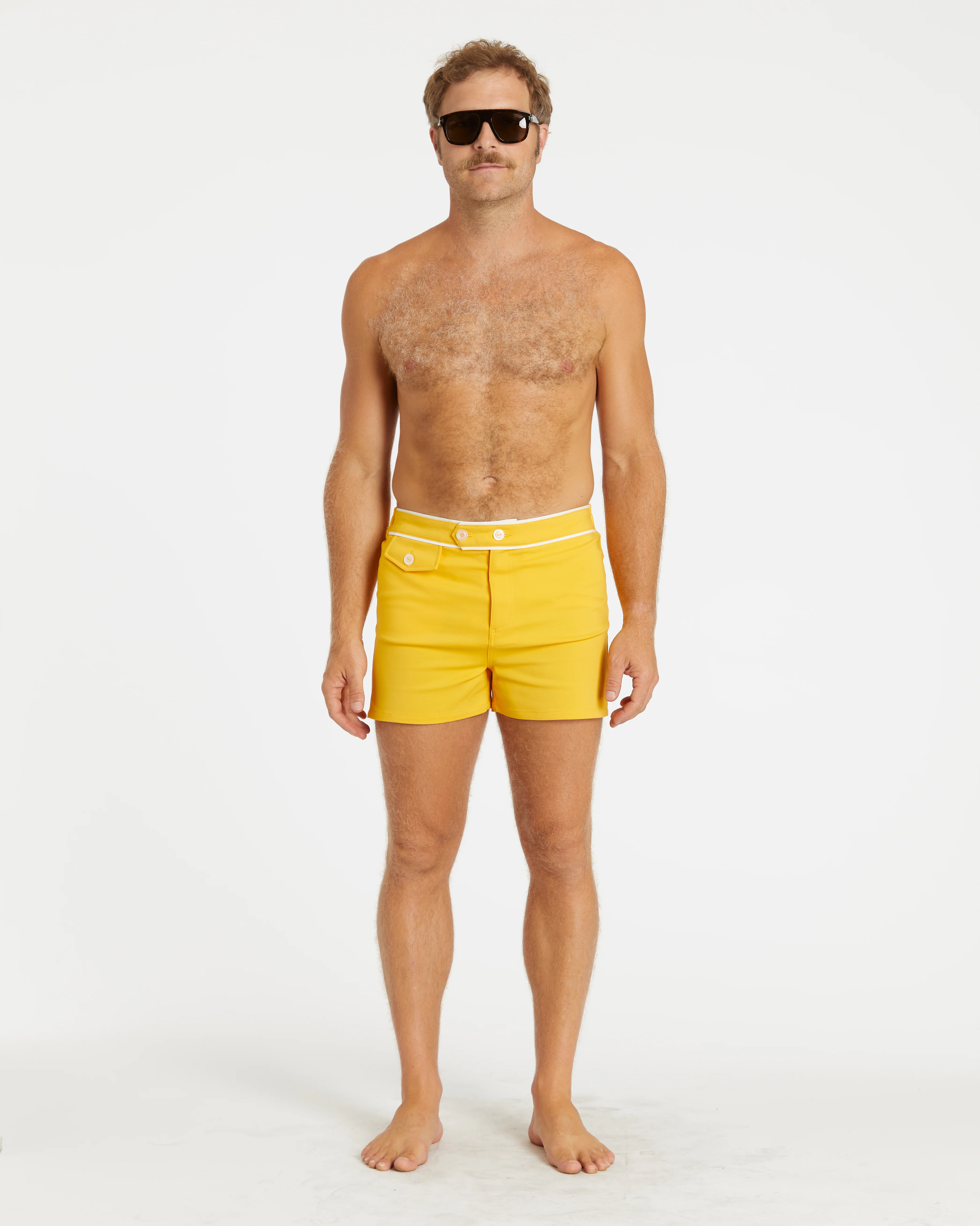 The trunk design is very true to its originsĀ and borrows someĀ good ideas from theĀ last 60 years.Ā Like the originals, theĀ trunkĀ is made of mostly cotton but is also blended with some nylon and elastic to make for quicker dryingĀ and better stretch. The double-button closure, front key pocket, and white contrast trim are iconic details ofĀ the 50s and 60s trunks. We took the liberty of making the key pocket big enough to fit a phone andĀ replacing the zipper fly with velcro.