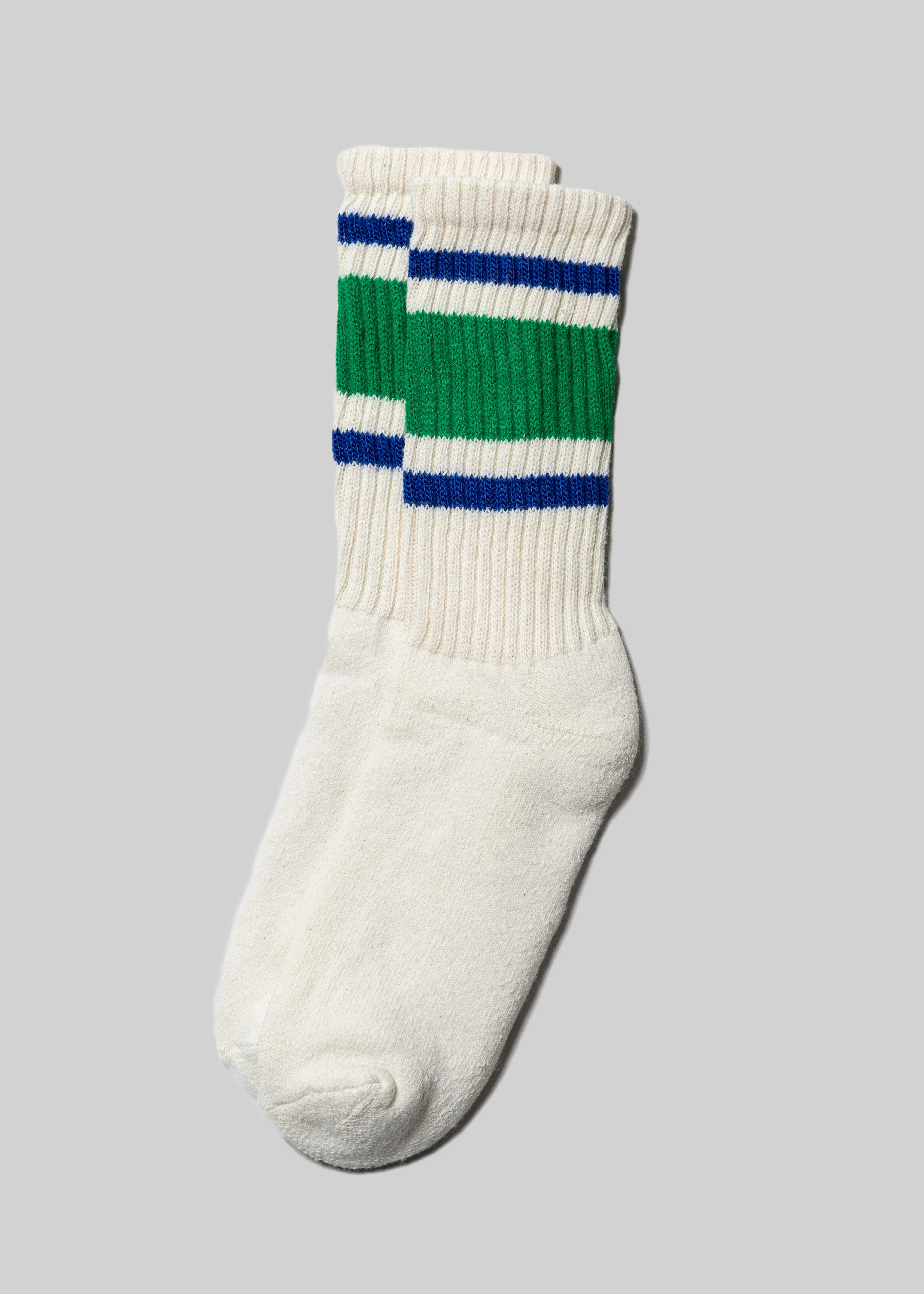 The Retro Stripe tube sock by American Trench remains a staple in any sock drawer. Knit from natural, unbleached cotton in a medium weight and universal fit with a comfortable, cushioned footbed and colorful design.