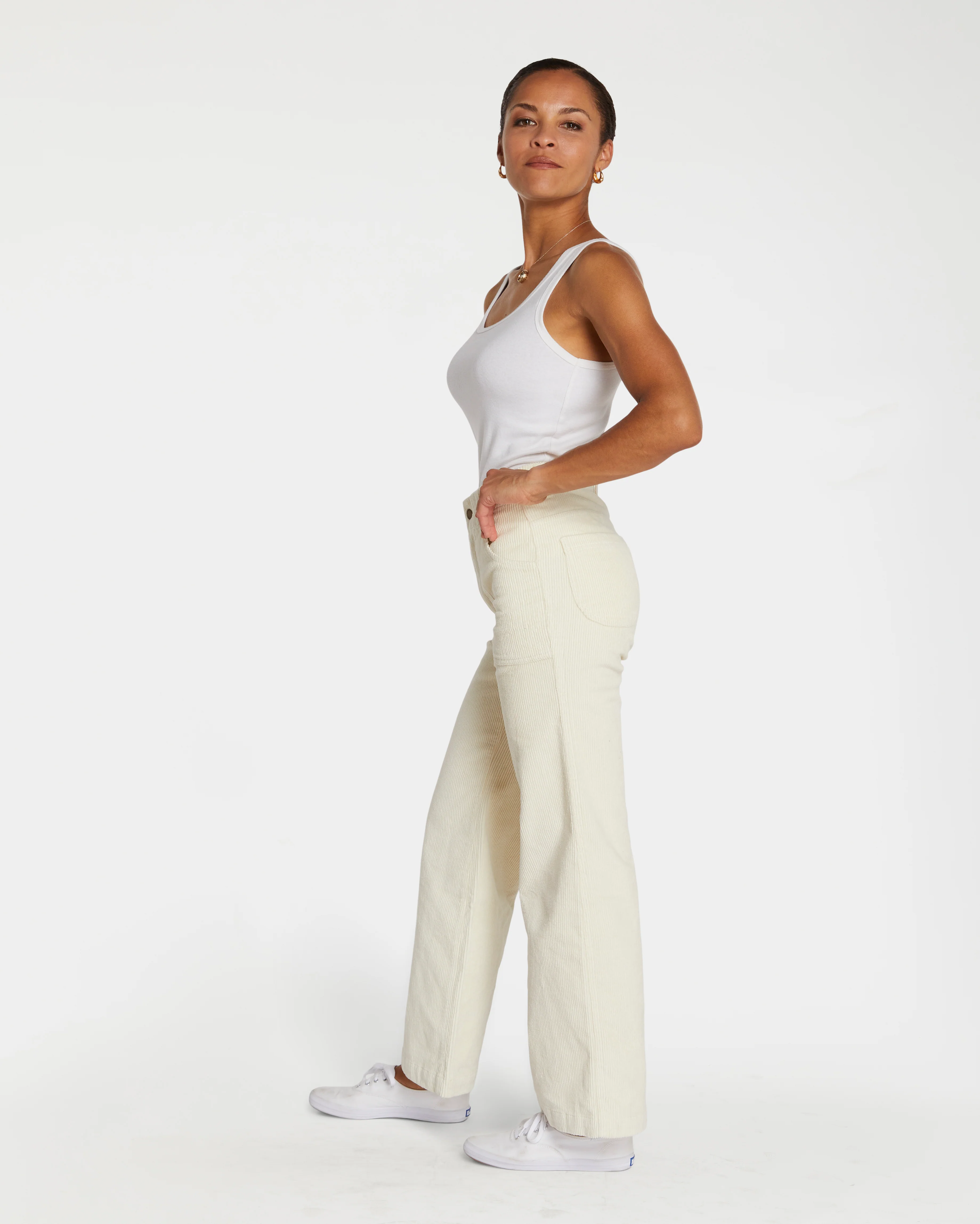 - 🌱 Stretch corduroy (98% cotton, 2% elastic)